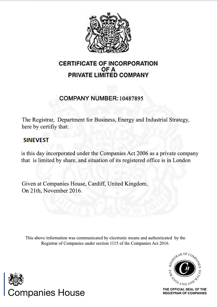 Our company conducts absolutely legal activities in the legal field. We are certified to operate trade business, we are legal and safe. We are certified by the United Kingdom company house with a registeration number 10425194. Click the button below to see our certificate.